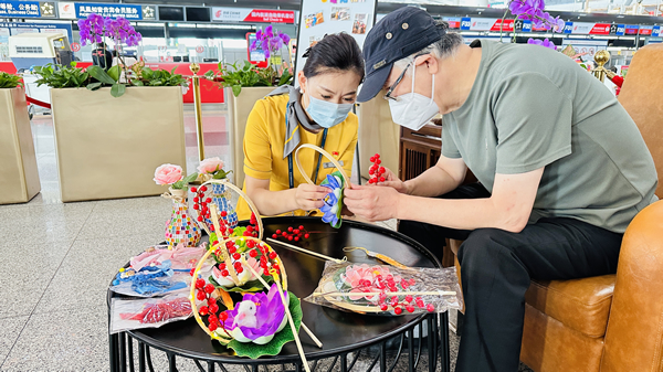 今年中秋喜逢國慶,為增添節(jié)日氛圍,弘揚中華傳統(tǒng)文化,首都機場在2號航站樓、3號航站樓愛心服務專區(qū)設置了中秋節(jié)主題活動,旅客可現(xiàn)場參與花燈、掛飾、琉璃花瓶等工藝品的制作,把來自首都機場的節(jié)日祝福帶回家。