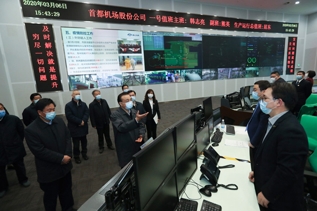 在機(jī)場(chǎng)運(yùn)行控制中心,李克強(qiáng)聽取疫情發(fā)生以來全國(guó)航班運(yùn)行、人員出入境、貨物進(jìn)出港等情況匯報(bào),對(duì)民航系統(tǒng)保障醫(yī)務(wù)人員和抗疫物資運(yùn)輸、開通點(diǎn)對(duì)點(diǎn)航班幫助重點(diǎn)行業(yè)農(nóng)民工返崗復(fù)工表示贊許。